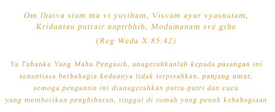 Atas Asung Kertha Wara Nugraha Ida Sang Hyang Widhi Wasa/Tuhan Yang Maha Esa, kami bermaksud menyelenggarakan acara Pawiwahan putra-putri kami.